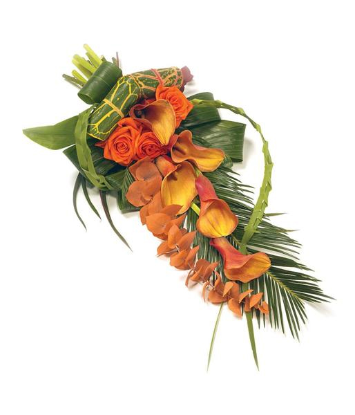 Calla lily and rose sheaf in shades of orange.Picture shows standard price optionTwo working days notice is required when ordering this funeral flower arrangement ReviewsThere are no reviews yet. Be the first to review “Calla Lily & Rose Sheaf”Cancel ReplyYour email address will not be published. Required fields are marked *Your rating *Rate…PerfectGoodAverageNot that badVery poor Name *Email *Your review * Save my name, email, and website in this browser for the next time I comment.Submit